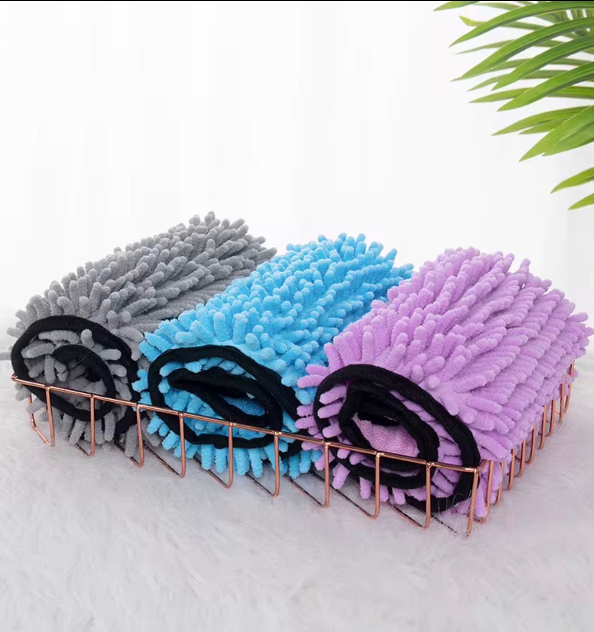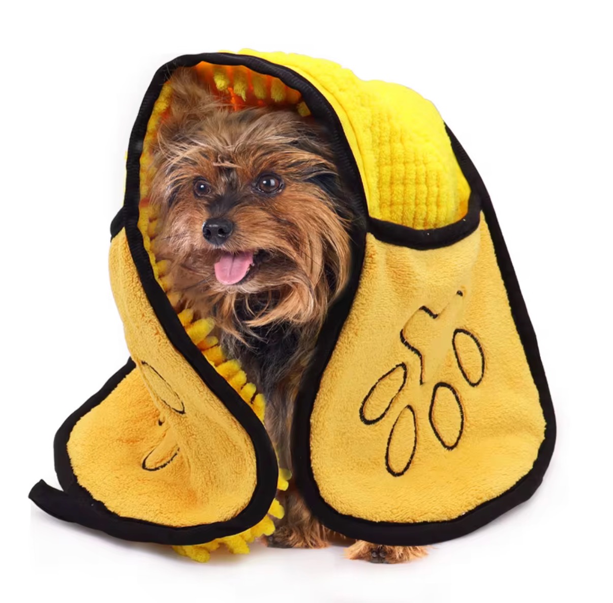 Thousands of soft chenille fibers trap moisture effectively—perfect for wet fur, muddy paws, or rainy walks.
