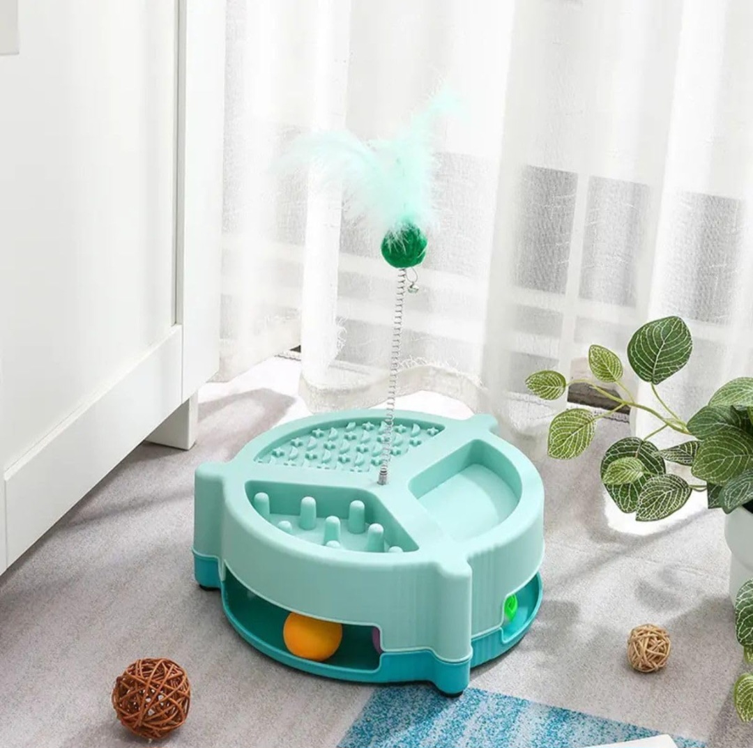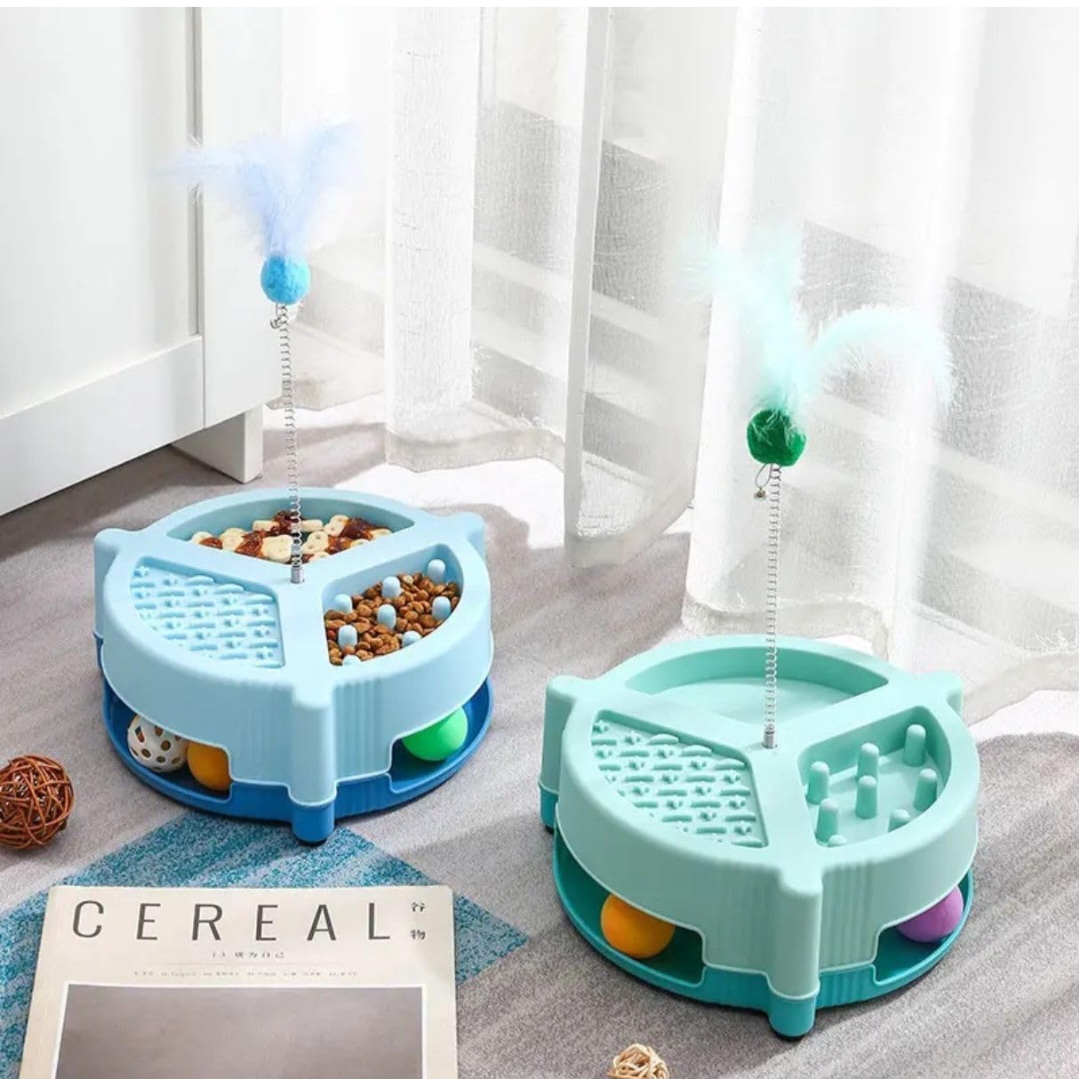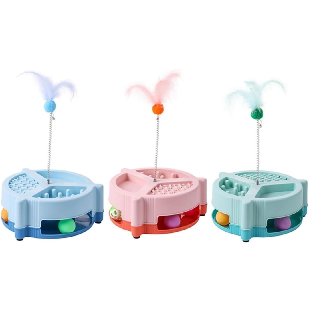Alongside the feeder, interactive play features like rolling balls and a spring-mounted feather toy keep pets mentally stimulated and physically active. This dual-purpose design ensures your furry friend stays entertained while also encouraging healthier eating behavior.